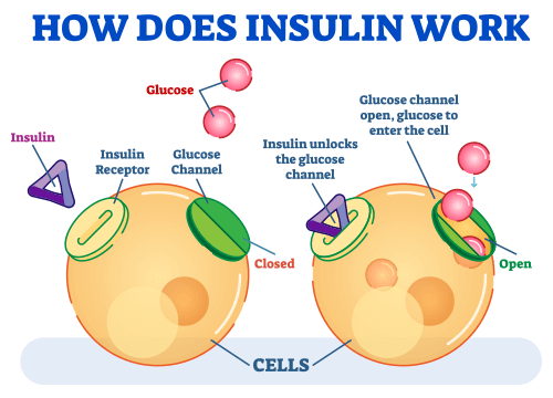 Insulin is responsible for regulating your blood sugars and either sending it to be burned off for energy or stored as fat to be used later.